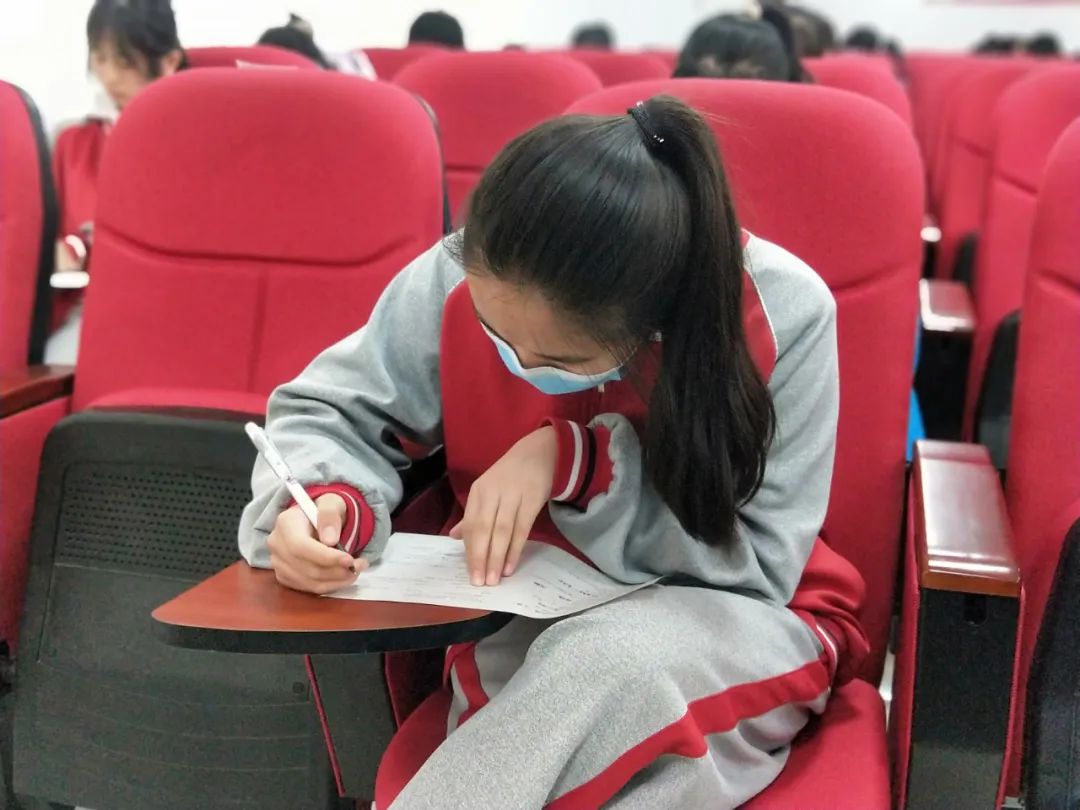 本次团课考试在学校道德讲堂开展,采用闭卷模式,严格按照标准考试要求,围绕《团章》、团员思想品德与能力、党的有关理论知识等进行测试。考前校团委老师向青年学生传达有关考试的规章制度,要求学生们端正考风、严肃考纪。考试期间每位入团积极分子都严格按照考试要求,认真作答,诚信考试;团委老师及各班团支书恪尽职守,严抓考风考纪,全程监控,整场考试严肃庄重,井然有序。
