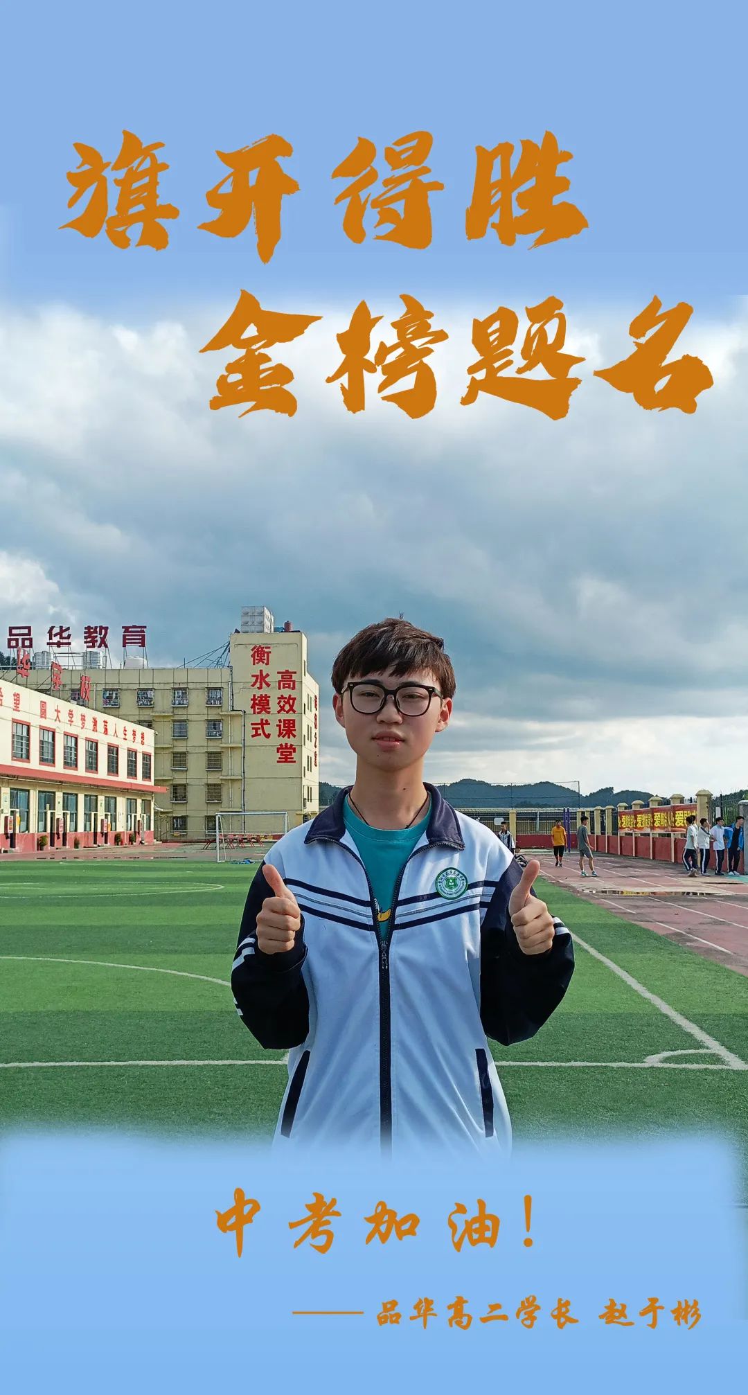 中考是通往成功道路的信号塔,指引着我们在人生的道路上披荆斩棘。想必学弟学妹们都已满怀信心准备好向前冲刺。那么在考试前我们应当怎么做呢?我们不要对自己施加太多压力,考试前多给自己心理暗示,相信自己一定能行。希望你们在中考这场“战役”中突出重围,向着自己的人生理想迈进。当然,作为品华大家庭的一员也十分欢迎你们的加入。