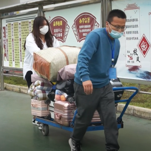 并完成扫码、测温、行李消杀等数道“入校关"后