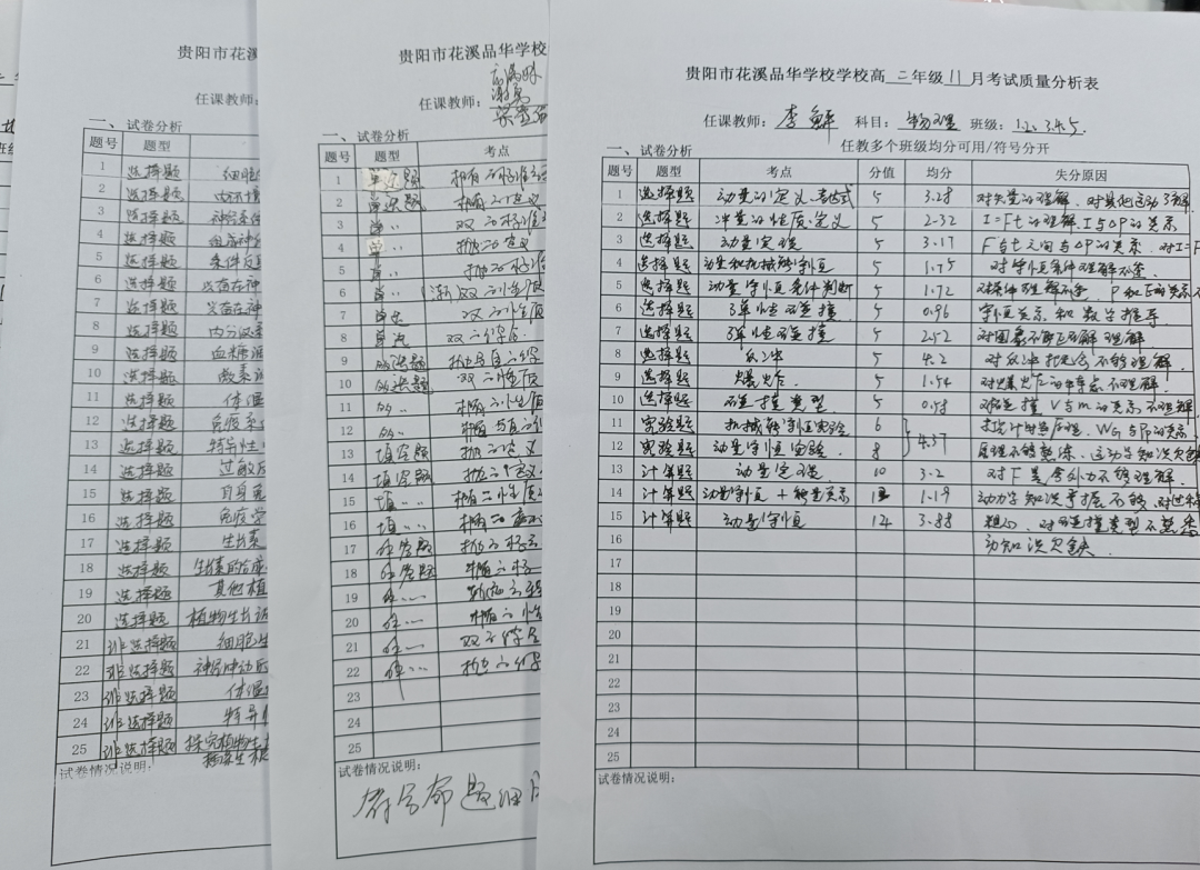 各学科组组内精准分析,从试卷整体到具体题型,考题难易分析、题型知识点考察、考题得分情况、失分原因等进行了精细分析和记录,各科教师针对知识点、考点,认真查找教学缺陷点、弱点,及时记录需强化教学的知识点内容和方向,调整优化教学策略;针对失分点和漏点,后期有针对性的强化训练,加强相关题型策略分析和练习。