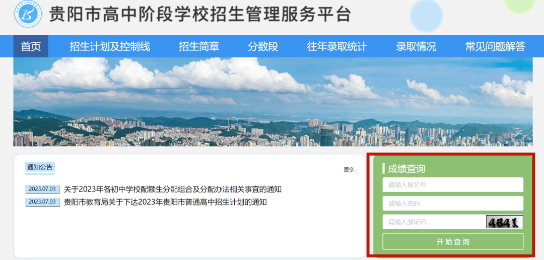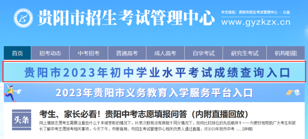 考生可登录贵阳市高中阶段学校