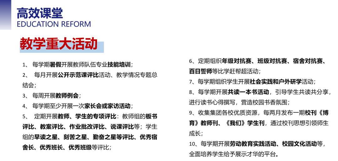 自建校以来,在上级政府、教育主管部门的大力支持下,我校为高等级院校输送大批优秀人才。为不断适应教育新发展格局,全面推进学校教育与社会发展深度融合,我校积极引进河北衡水先进教育教学理念,于贵阳全面首推衡水教育模式,引进衡水优质教育师资和管理团队,以“培养学生健康成熟的人格和终身学习的能力”为办学宗旨,坚持“思想引领、激情培育、质量奠基、高效提升”的办学思路,以衡水教育、高效课堂、激情教育、感恩教育为育人特色,创造花溪全新的教育领地,打造一所学生向往、教师幸福、家长满意、政府放心、社会认可的负责任的学校。