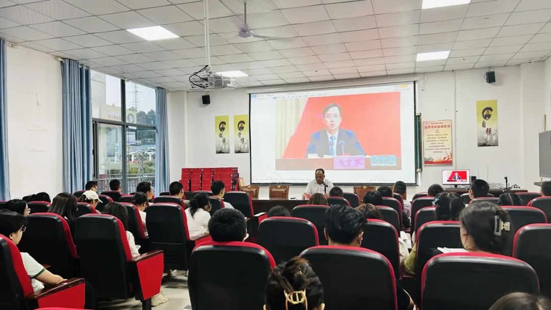 会议初始,学校党支部杨道清书记为老师们做了党建专题讲座,同时传递中共贵阳市委相关会议精神。会上,他向辛勤奉献在教育教学岗位和管理服务一线的全体教职工致以崇高的敬意和最诚挚的祝福。