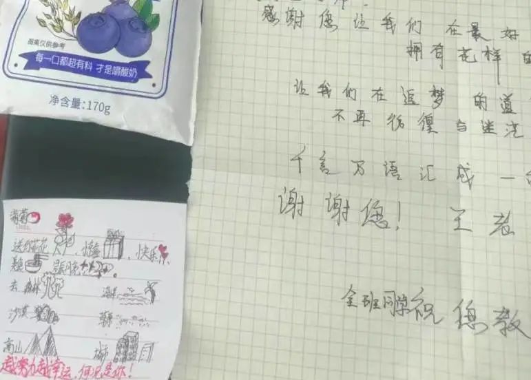 师恩深似海,教诲如春风。在教师节当天老师们还收到了各班学生的祝福卡和礼物,同学们自发书写了饱含心意的手写信、画出了一张张爱意满满的绘画作品和老师们的Q版头像、还送出了一份份浓浓的心意,同学们字句之间写不尽对老师们的喜爱,也道不尽大家的感激。但在老师们微笑里,我们看到了品华学子的知恩懂礼,也感受到老师们浓厚的职业幸福感。