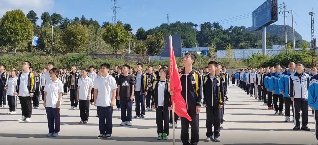 金秋送爽,丹桂飘香。在这美好的金秋时节,我们即将迎来万家团圆、举国欢庆的中秋节和国庆节,为提前庆祝中秋传统节日及祖国74周年华诞,以爱国主义教育,传递师生爱国爱家之情,引导全校师生不忘初心,牢记使命,把爱国情、报国志、强国行融入奋斗中。9月25日,我校全体师生在操场集聚,隆重举行了“迎中秋·庆国庆”的主题升旗仪式。本次升旗仪式由高一1班杨陈鑫毅主持。