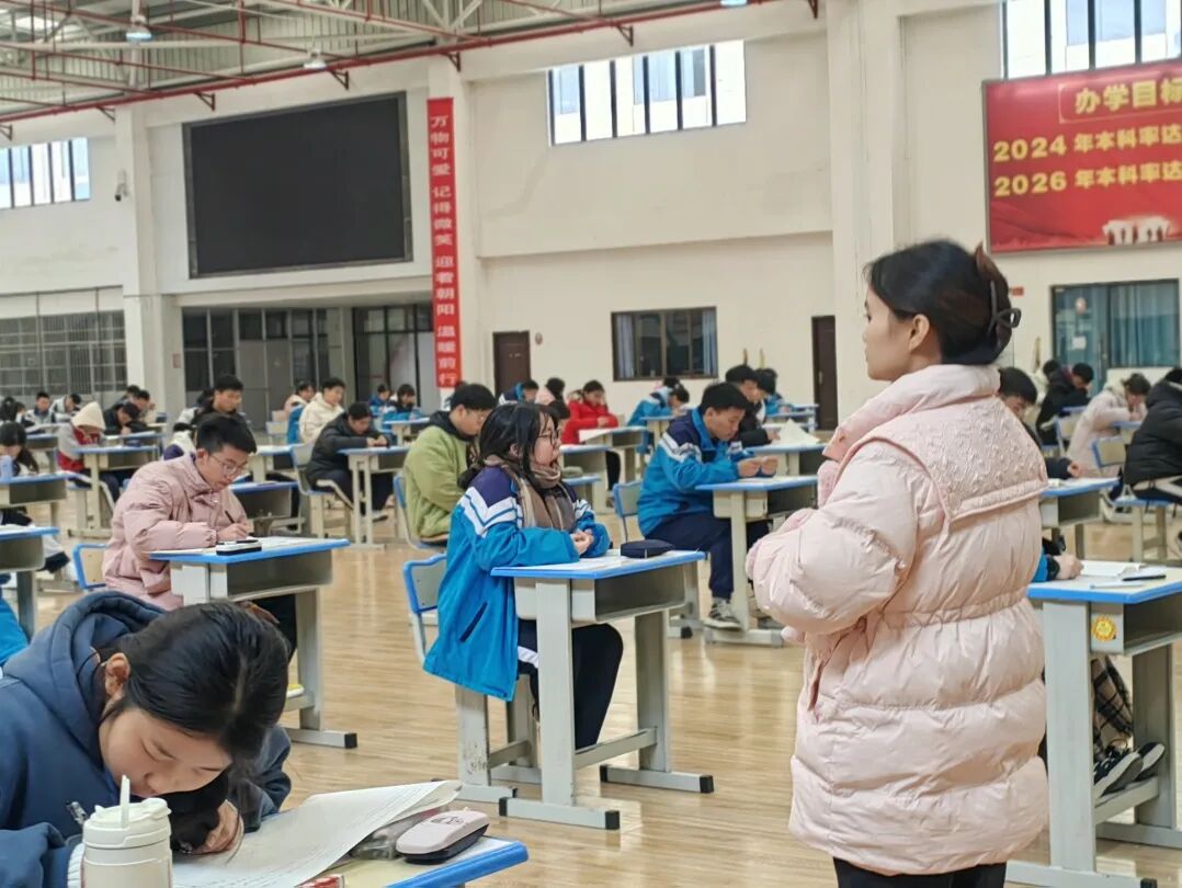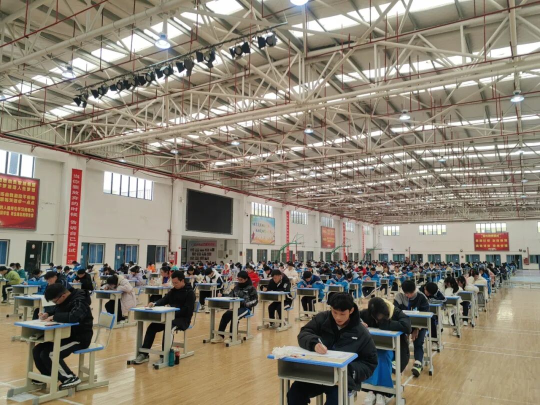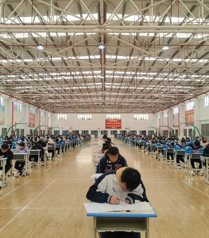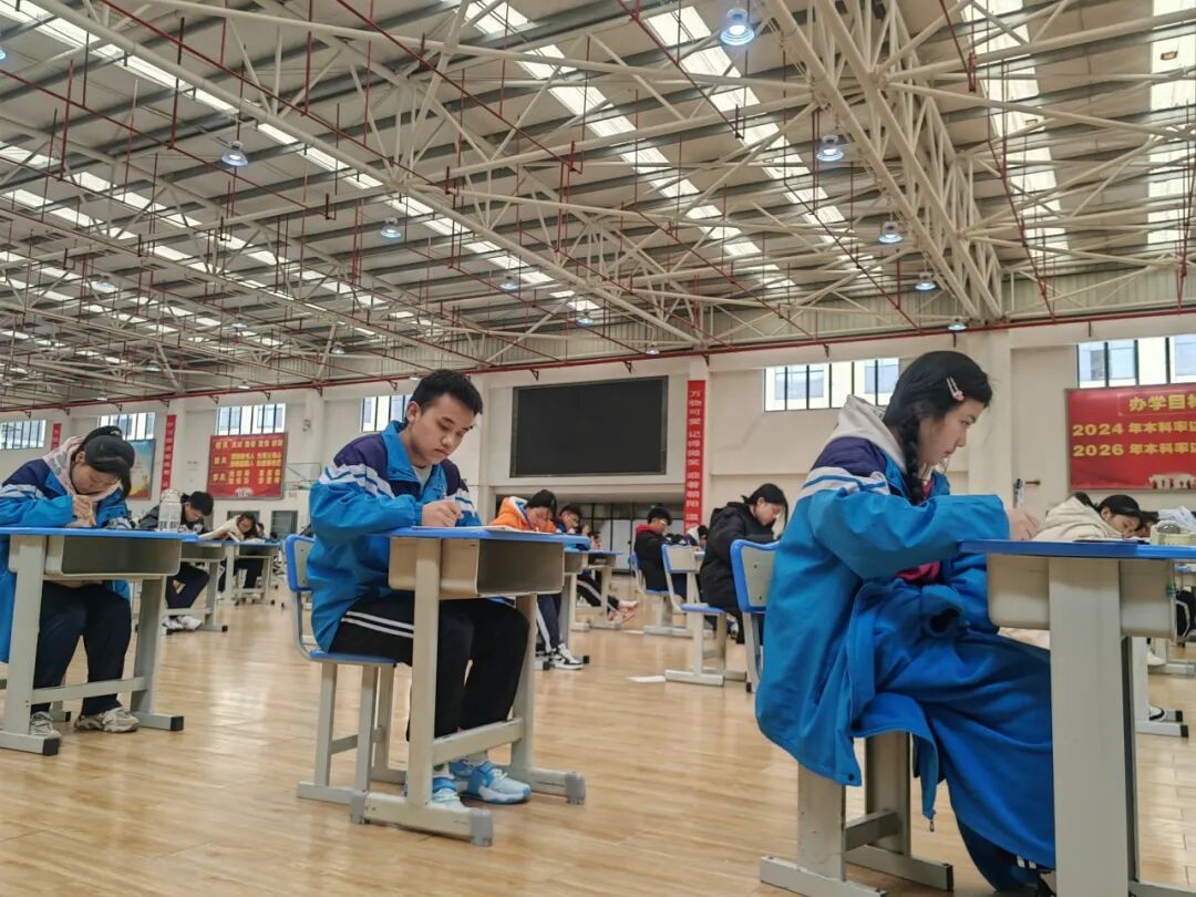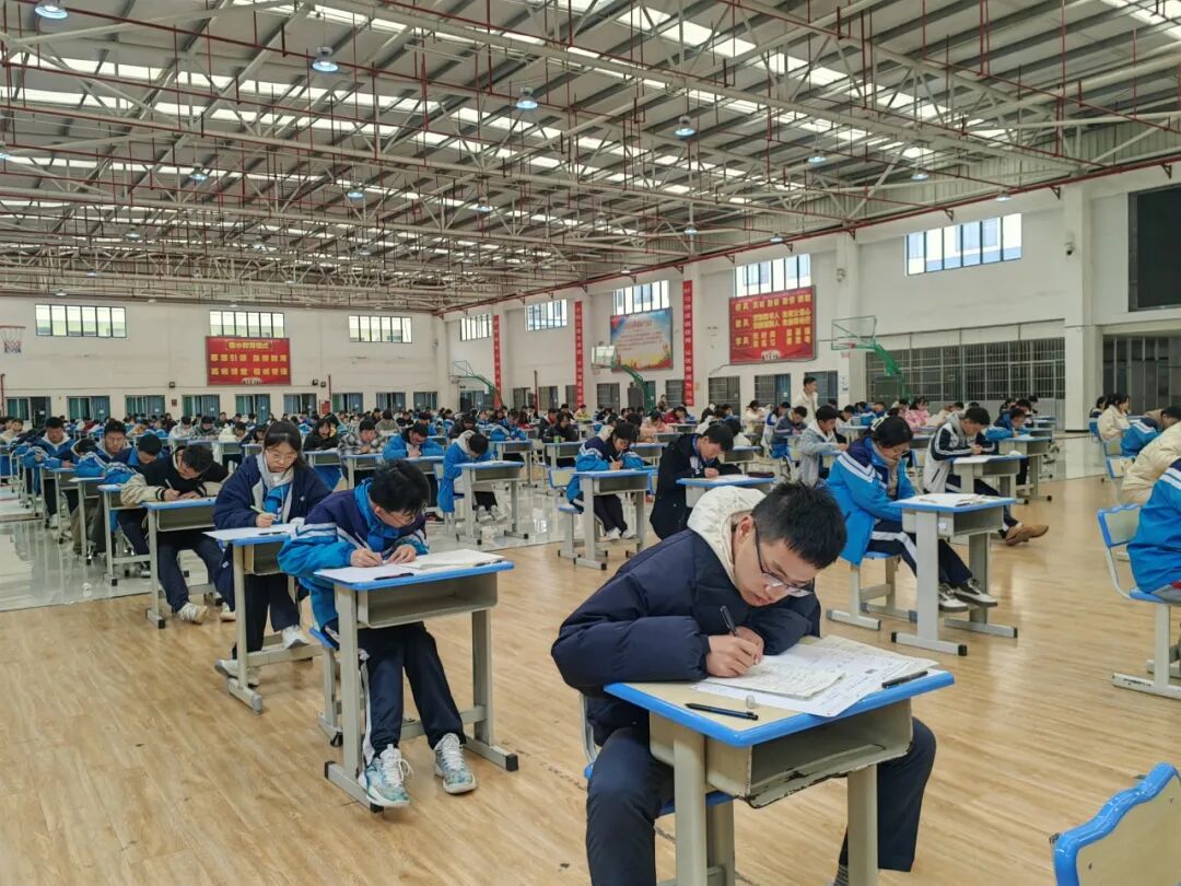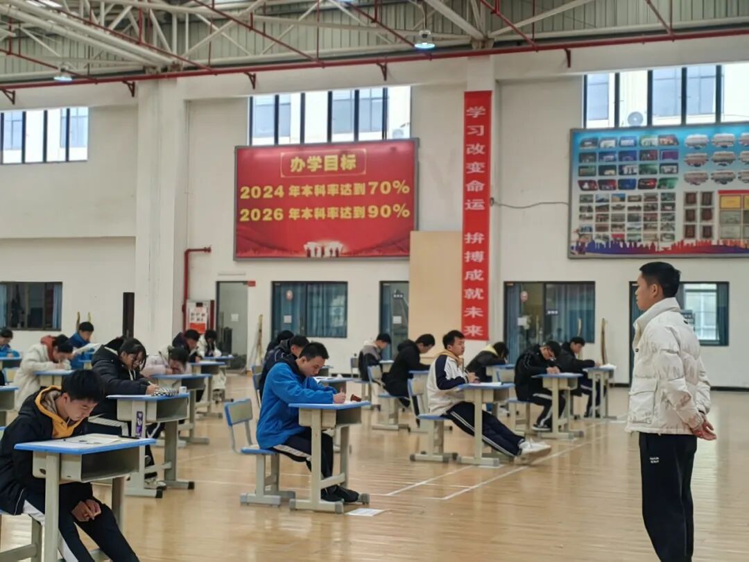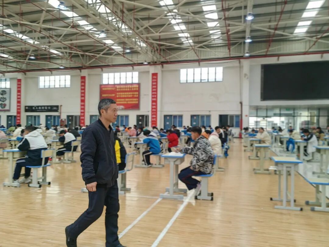 我校领导高度重视,提前部署、严密组织,确保各项工作规范、有序进行。本次考试采用大型考场的方式,全体高三学子集聚篮球馆一同考试。校领导实时巡视考场,了解学生考试情况。各部门紧密配合,老师们认真监考,严肃考纪,高度负责,为每一位学生保驾护航。