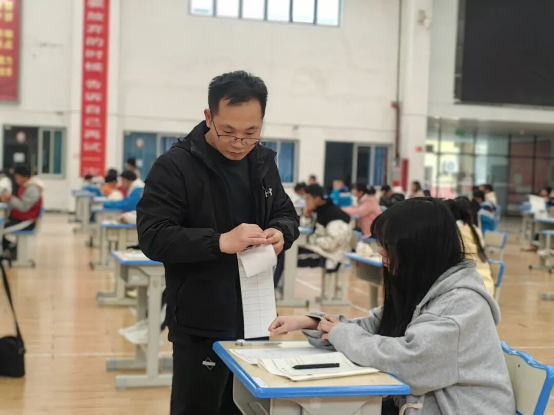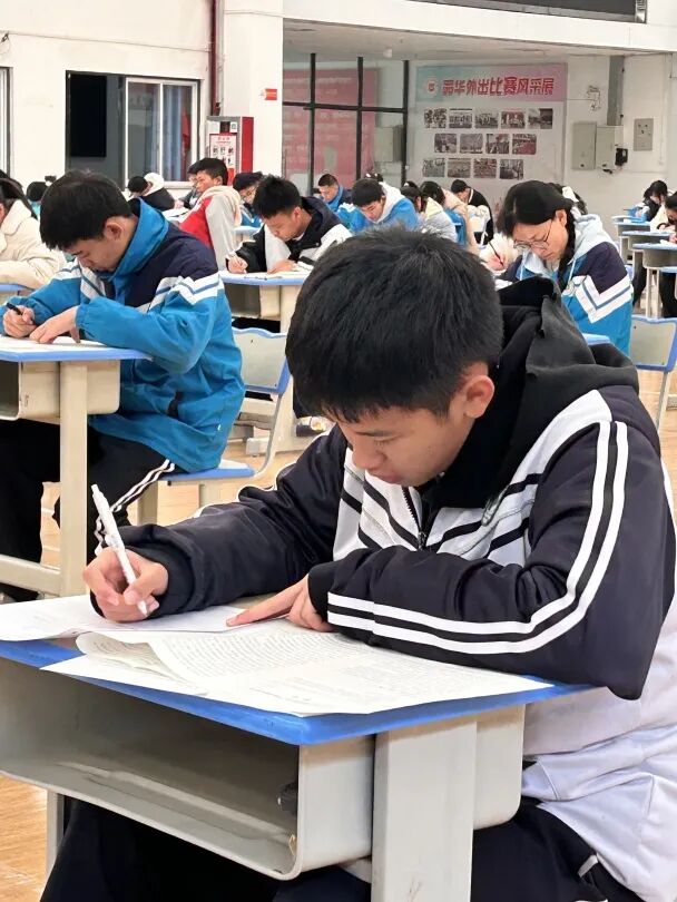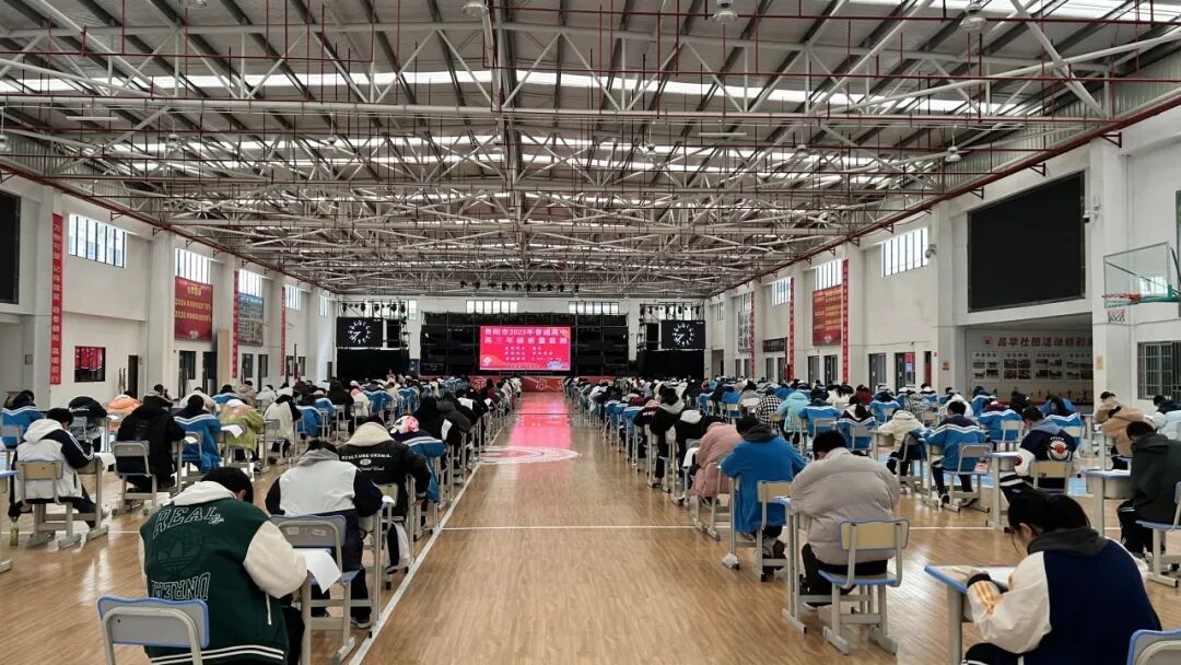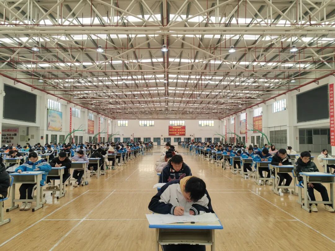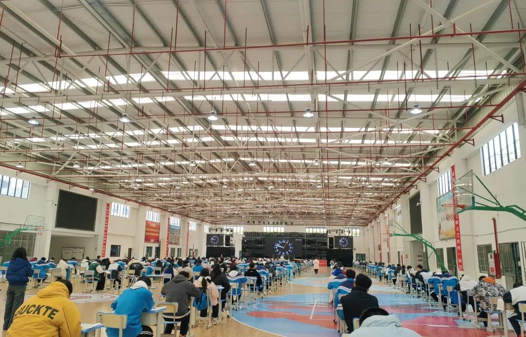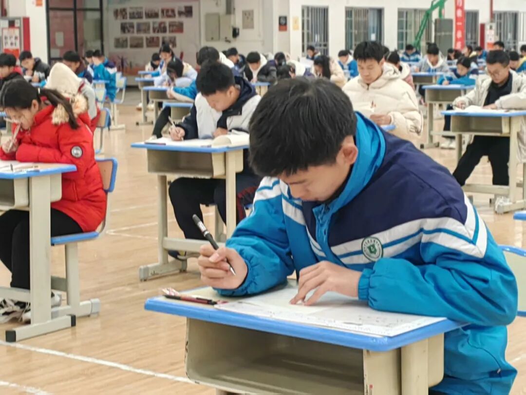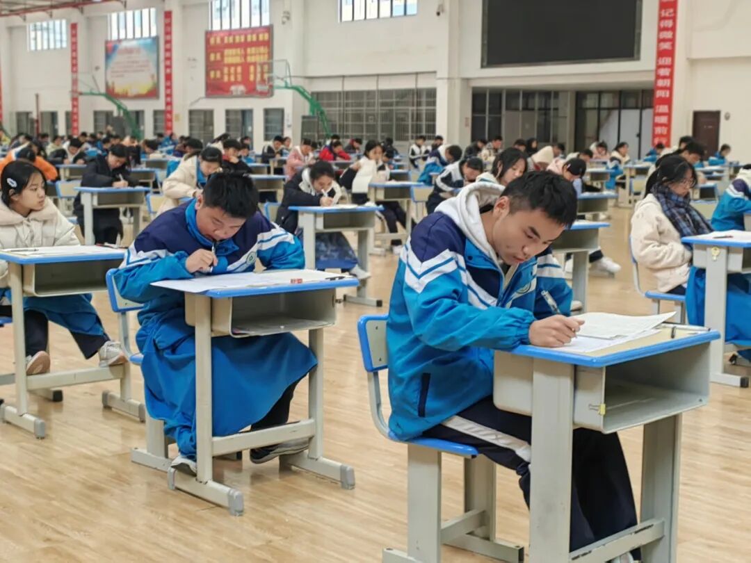 我校领导高度重视,提前部署、严密组织,确保各项工作规范、有序进行。本次考试采用大型考场的方式,全体高三学子集聚篮球馆一同考试。校领导实时巡视考场,了解学生考试情况。各部门紧密配合,老师们认真监考,严肃考纪,高度负责,为每一位学生保驾护航。