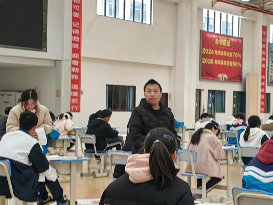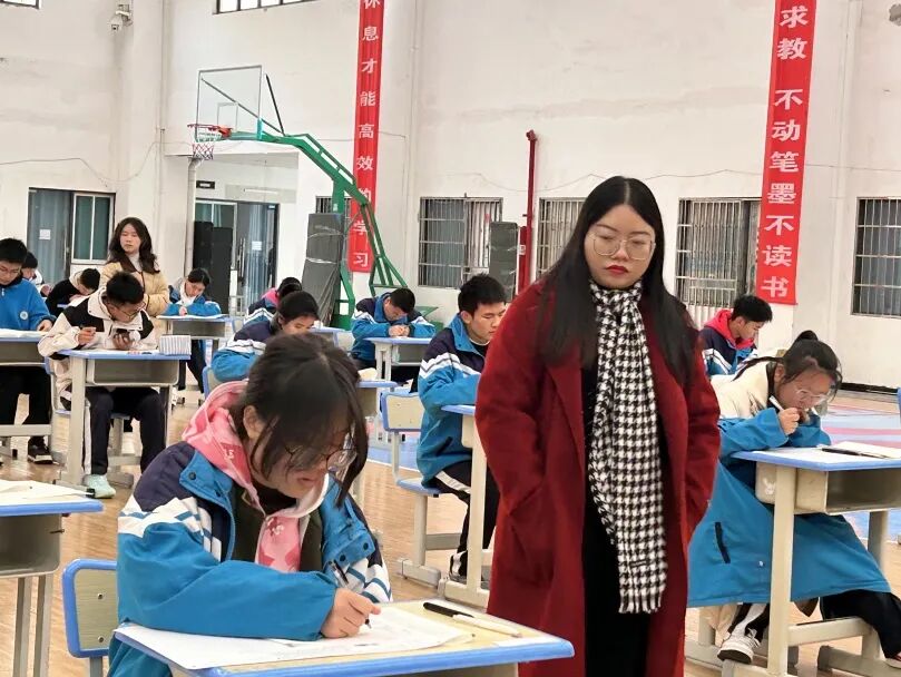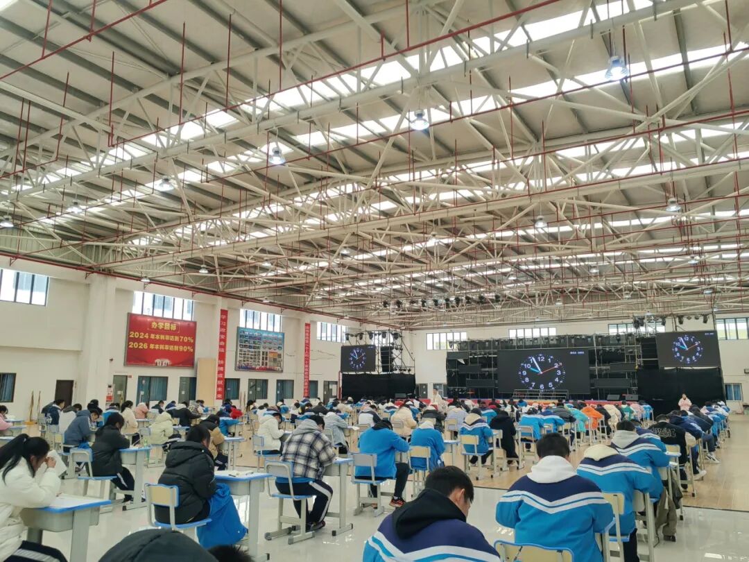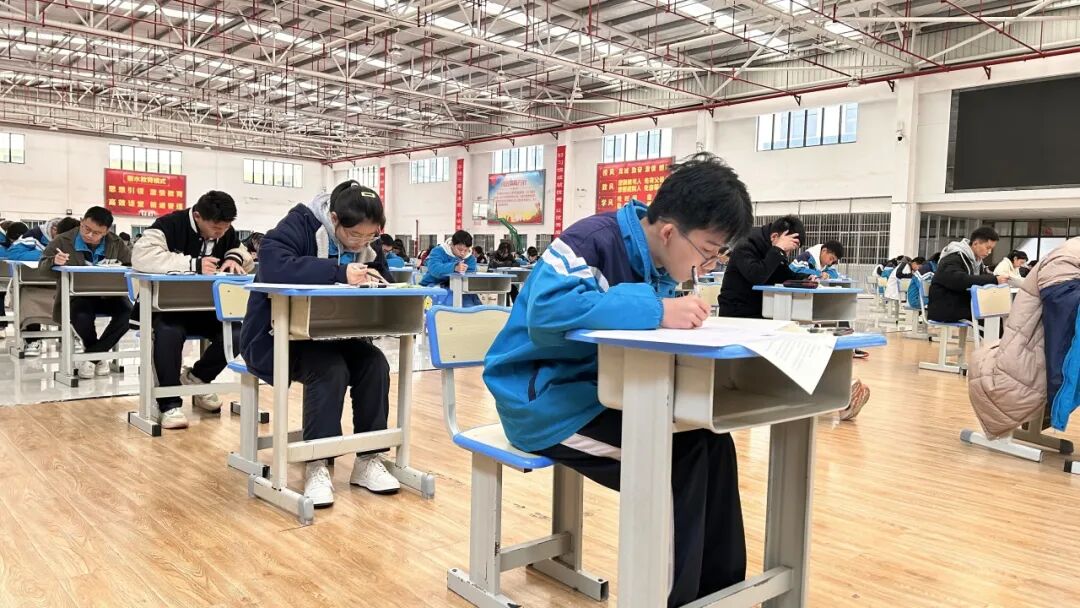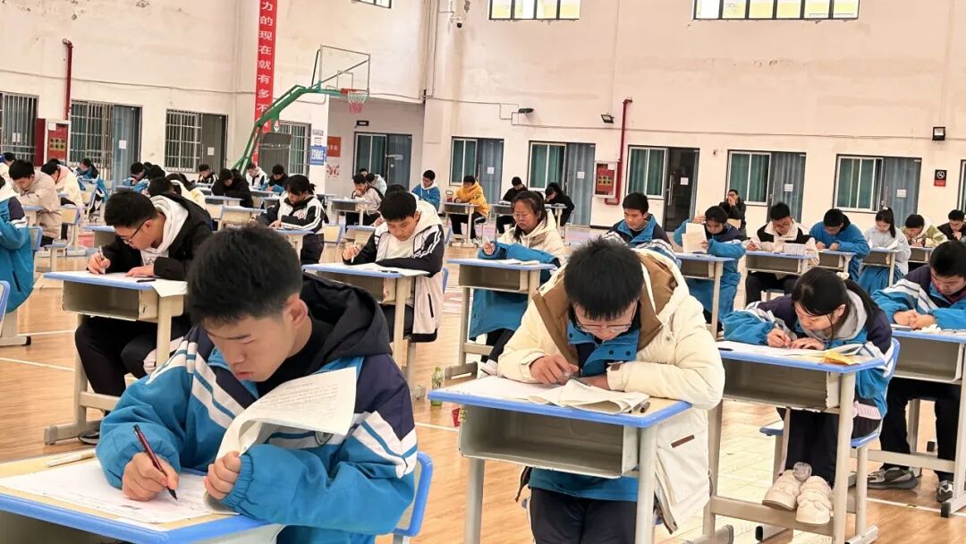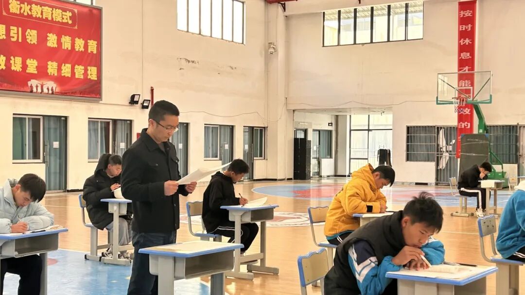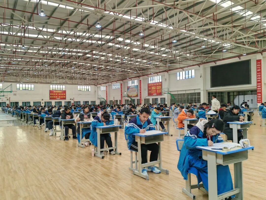 我校领导高度重视,提前部署、严密组织,确保各项工作规范、有序进行。本次考试采用大型考场的方式,全体高三学子集聚篮球馆一同考试。校领导实时巡视考场,了解学生考试情况。各部门紧密配合,老师们认真监考,严肃考纪,高度负责,为每一位学生保驾护航。
