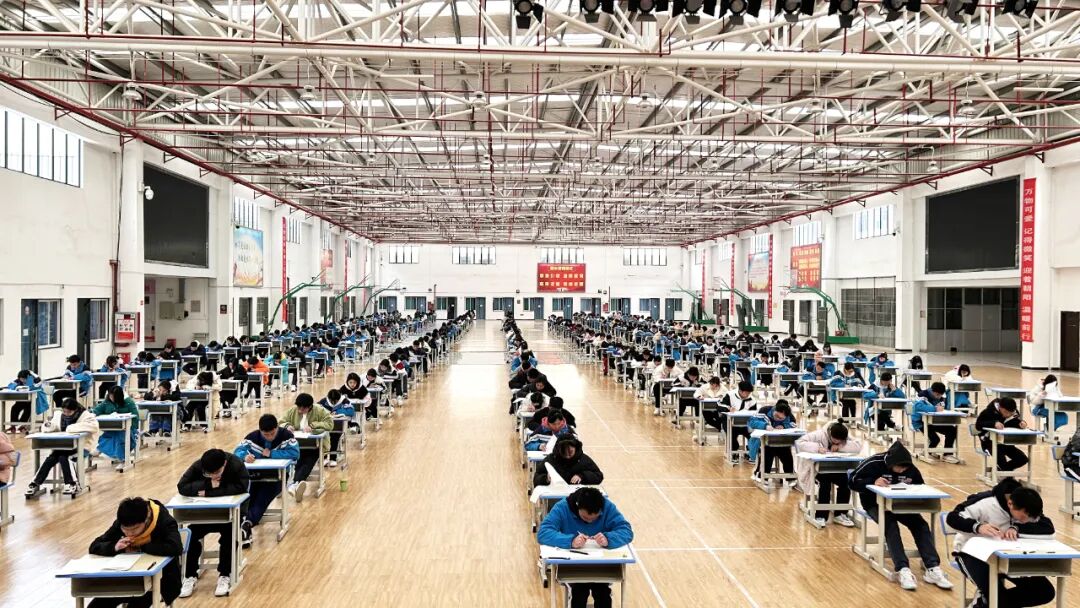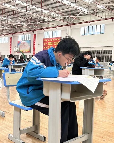 青春有梦,士气如虹。考生们沉着冷静,严阵以待。考场上每人都全神贯注,精心深思,认真审题、谨慎答题。篮球馆上空,书写的“沙沙”声轻轻传来,仿佛是同学们取得理想成绩后的喜悦呐喊。