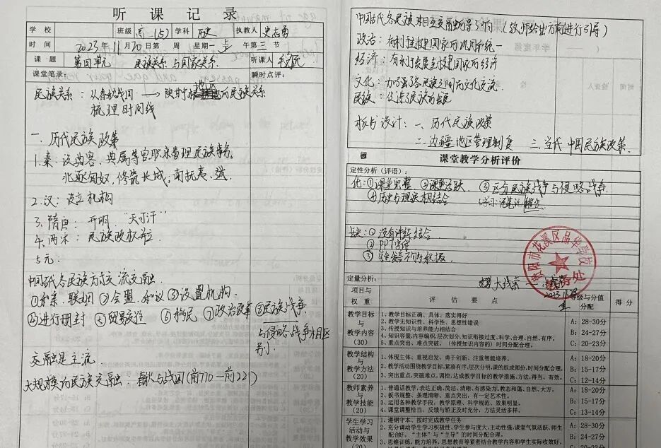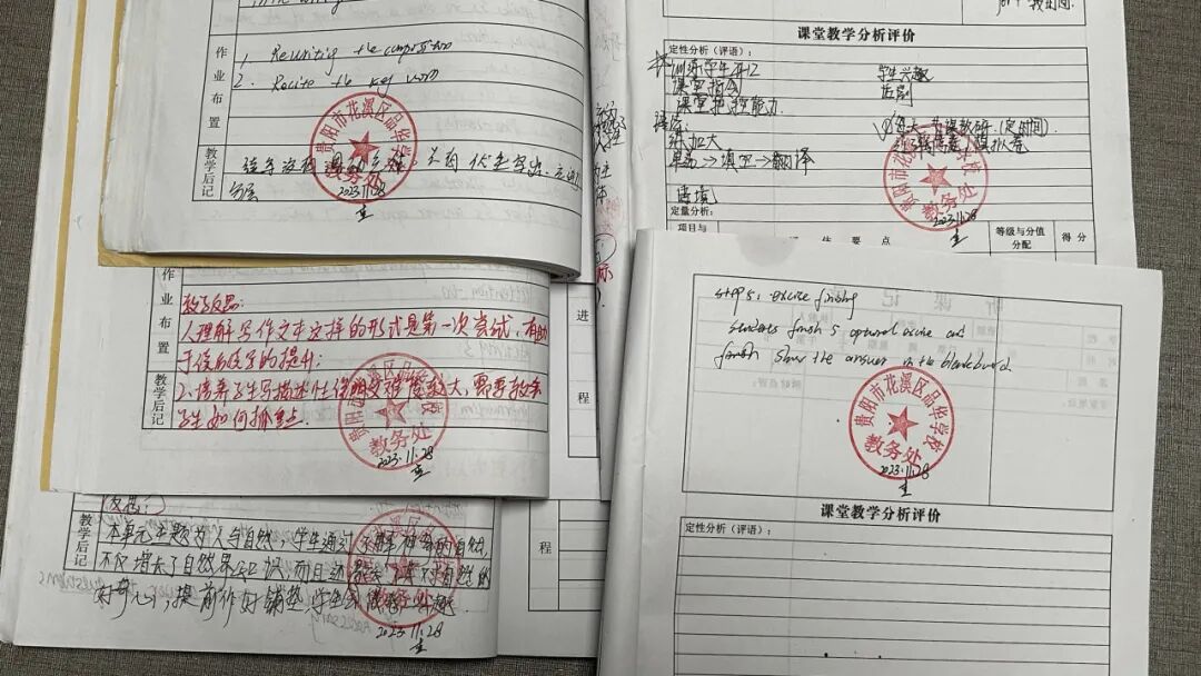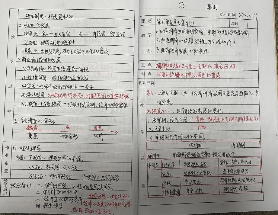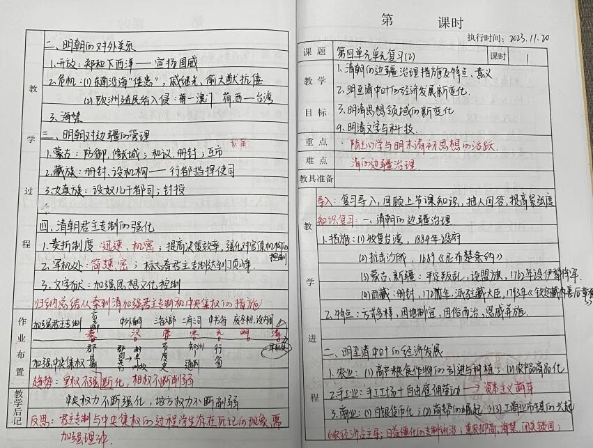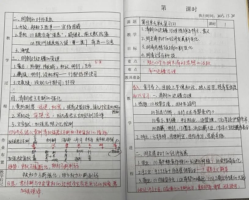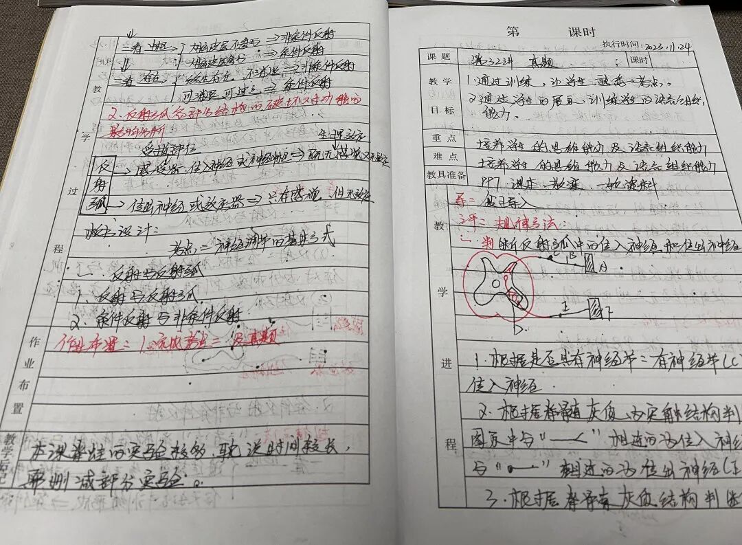 在教务检查中,总能看到老师们日常踏实工作的影子。老师按照要求制定详细的教学设计、教学过程和教学反思,紧抓教材,潜心备课,以新教材新课标为依据,结合学情,确定教学目标,切实把握好教学的正确方向。教学思路清楚,设计合理,预设充分,教学方式多样,重难点突出,兼顾了教师主导与学生主体,充分体现了新课标的教学理念。教案本上字迹工整美观,圈点标注下足功夫。