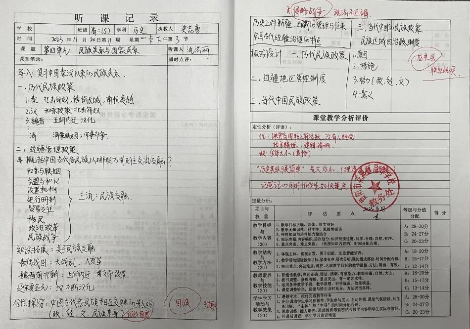 教学管理是抓手,教学质量是生命。一次检查就是一次成长,通过每一次的教务常规检查,进一步明确了学校做好教学常规工作的要求,引导教师在日常教学工作中要以学生为中心,适时调整教学策略对学生进行传道授业解惑,增强师生之间教与学的自觉性、主动性、创造性,促进学校教学工作不断优化进阶。