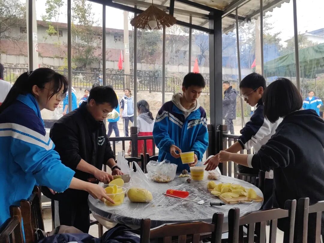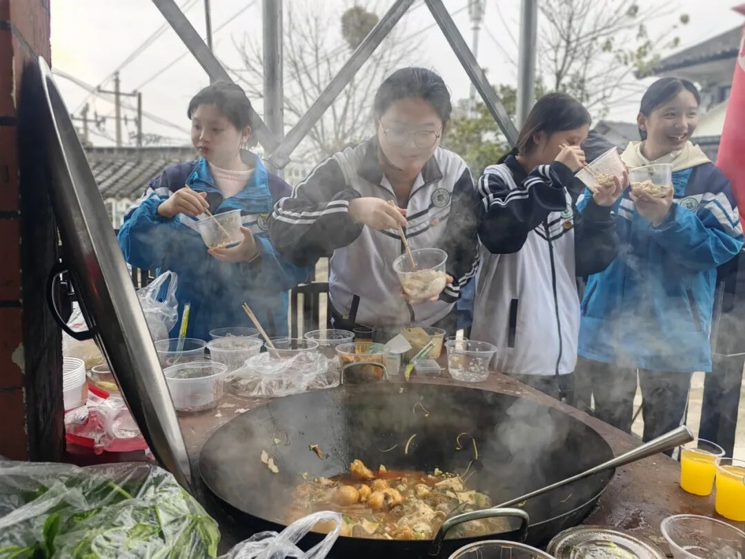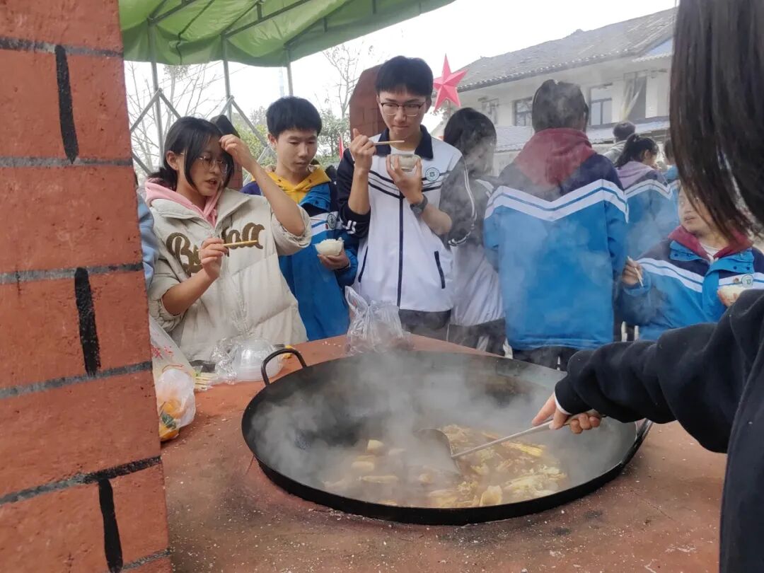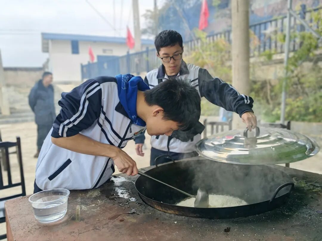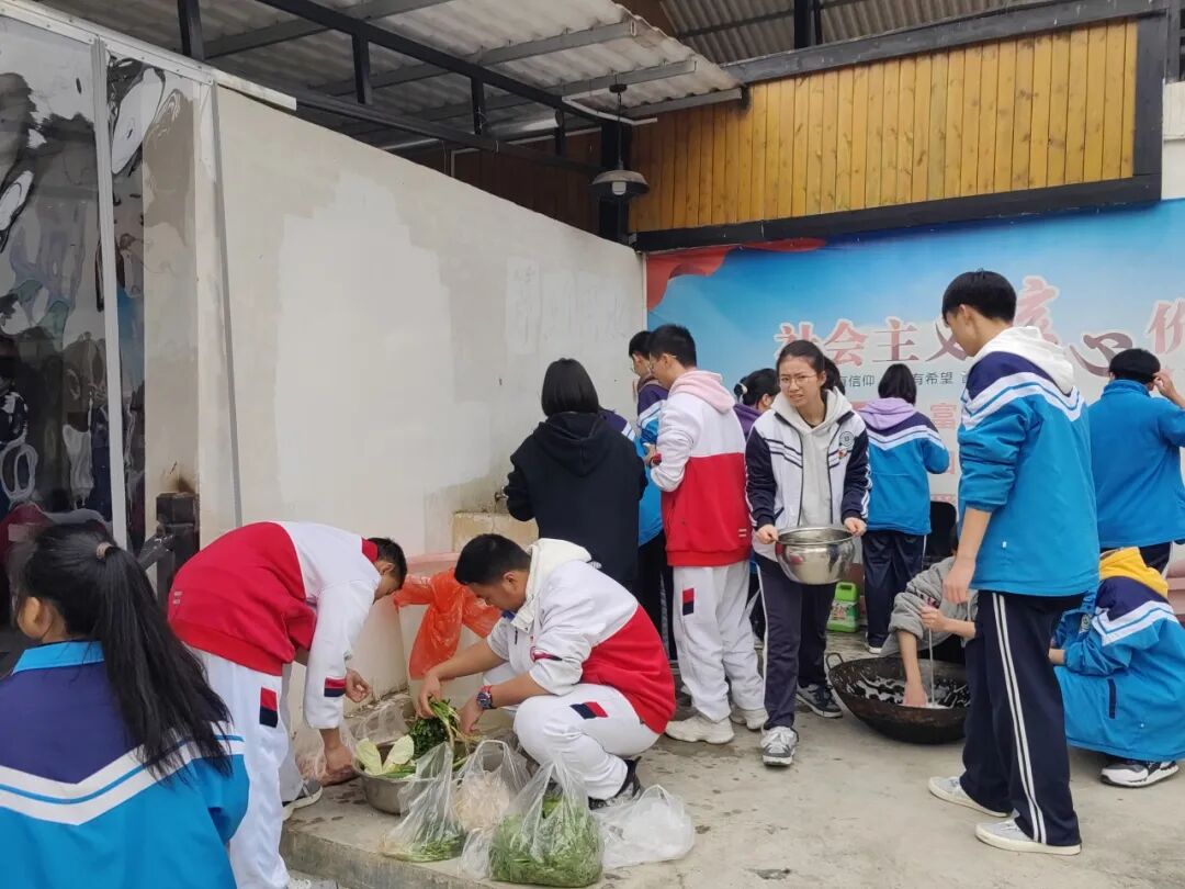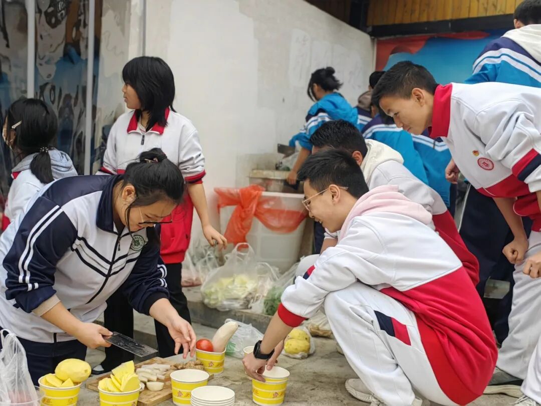 大家在柴米油盐中品味生活,在团结协作中增强技能。分享着柴火炊烟的美食,品尝着共同烹饪的佳肴,感受着共同协作的快乐,满满的幸福洋溢在每位学生的脸上。