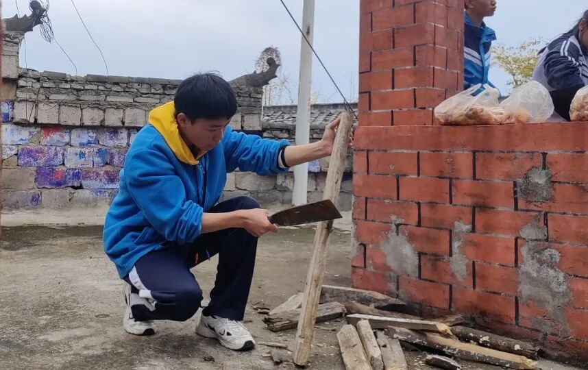 从市场采购结束后,全体共青团员在老师的陪同下,乘坐大巴来到营地。同学们按照事先分组,有序行动。从洗菜、切菜、洗锅、劈柴、生火、提水、做饭到煮菜……大家各显身手,忙得不亦乐乎。