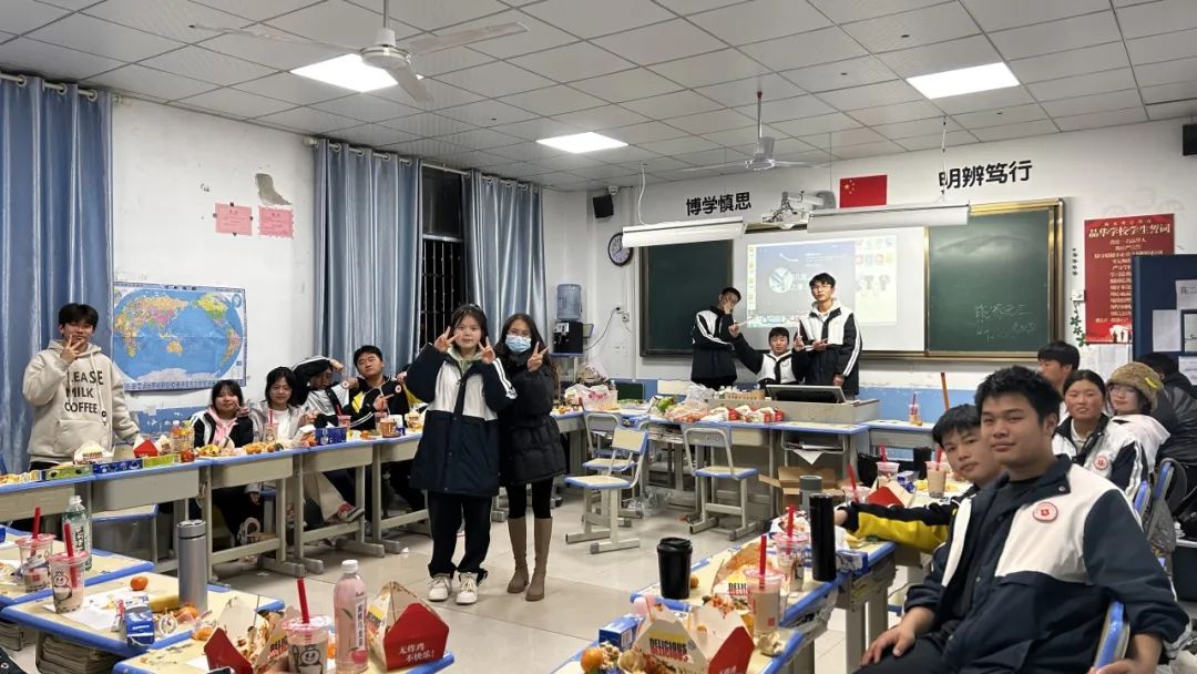 趣味运动会结束后,全体师生以班级为单位齐聚一堂,开启了一场盛大的元旦美食派对。大家载歌载舞纵情狂欢,用热烈的方式共同迎接2024的到来。