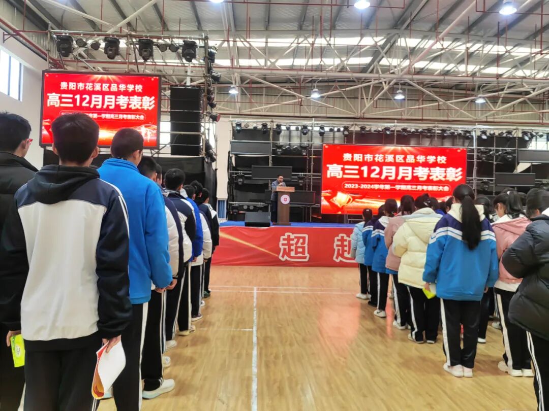 一千次振翅后,离天空更近,一万里跋涉后,征途更辽远。为明确目标、坚定信心、振奋精神,为下阶段备考鼓舞士气,2024年1月11日,品华学校高三年级第四次月考总结暨表彰大会在篮球馆举行。品华学校高中部梅再强校长、教务处于全忠主任、高三年级主任李鲆老师以及高三全体师生出席大会。