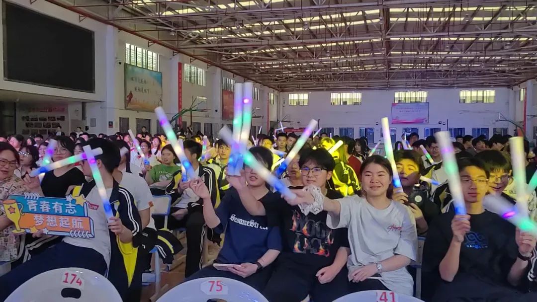 伴着绚丽的灯光、热烈的掌声和疯狂的尖叫,主持人周娅莲、李彩虹闪亮登场。同学们挥舞着手中的荧光棒,尖叫鼓掌,花式应援,为比赛加油助威。用激情迎接美好,同这片闪烁的海洋一起见证精彩绽放。